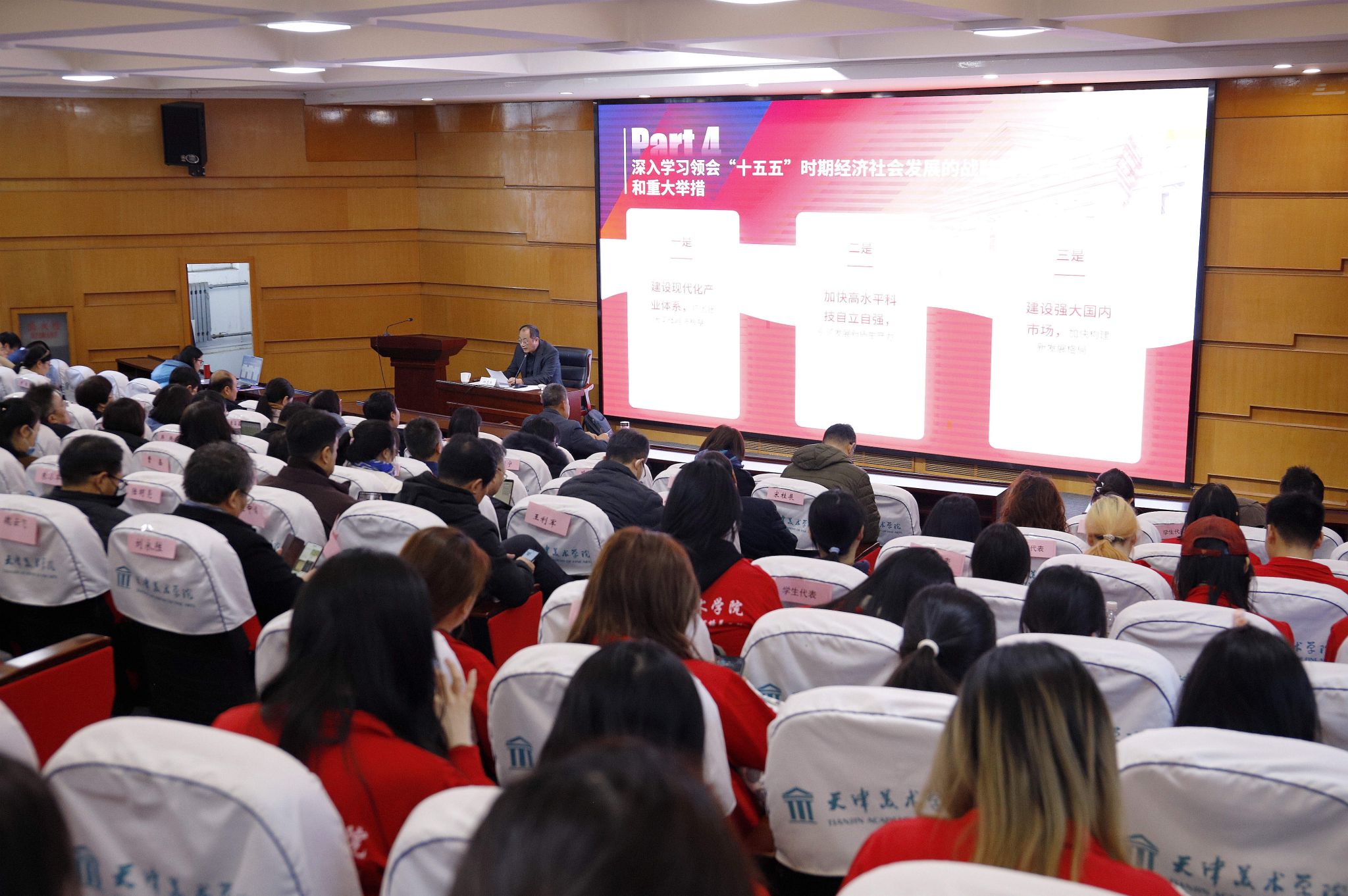 邱志杰以《深入学习贯彻党的二十届四中全会精神,全面推动学校“十五五”高质量发展——天津美术学院深入学习贯彻党的二十届四中全会精神》为题作宣讲报告。邱志杰全面系统解读了党的二十届四中全会的重大意义,带领学习了习近平总书记在全会上的重要讲话精神,宣讲了市委、市教育两委和校党委迅速部署的具体安排,聚焦深化教育综合改革,全方位解读了学校贯彻落实全会精神推动学校高质量发展的具体举措。整场宣讲报告逻辑严密、催人奋进,既有理论高度,又有实践深度,为师生深刻领会把握党的二十届四中全会精神提供了精准辅导,为学校下一步事业发展把脉定向。